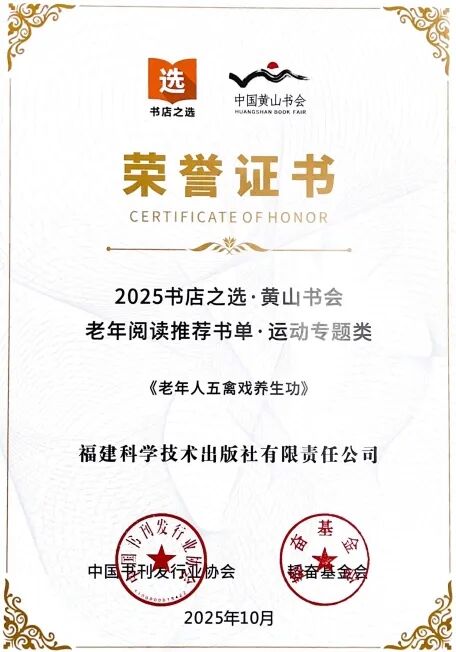11月15日在中国黄山书会期间,由中国书刊发行业协会、韬奋基金会甄选,我社图书《老年人五禽戏养生功》入选“2025书店之选活动·黄山书会 老年阅读推荐书单”,于首届老年阅读创新发展大会现场公布。