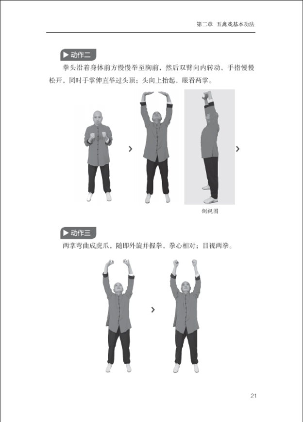 该书是对我国传统健身养生文化的现代化诠释,也是面对社会老龄化趋势而传递出的一份关怀。全书分三部分,介绍了五禽戏的历史流变,以图、文、云端视频结合的方式详细介绍了五戏十动作的操练方法、保健原理,并针对老年人常见病症如高血压、糖尿病等提供了对症练习方案。