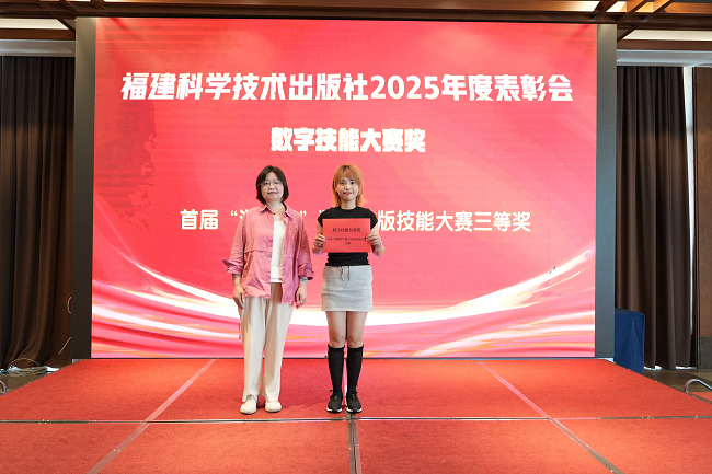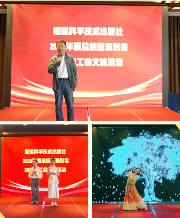 上午召开2025年度表彰会。在柔美动听的音乐声中,一支极富韵味的传统独舞徐徐拉开大会帷幕。福建科学技术出版社社长、总编辑郭武作开场发言,简要回顾总结了2025年度全社各项主要工作取得的成绩,勉励全体职工将受表彰的先进个人作为榜样,在未来的出版工作中再创佳绩。接着,社领导班子全体成员对2025年度考核优秀员工、重点项目立项奖获得者、数字技能大赛奖获得者和2025年度单书效益一等奖获得者进行表彰。