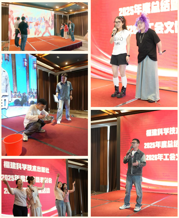 全体职工还开展了丰富多彩的文娱演出活动:青年编辑们的《歌曲串烧》活力四射,小品《吃面》幽默风趣,社领导班子一曲《真心英雄》带动全场大合唱,展现了科技出版人团结协作、昂扬向上的精神面貌。