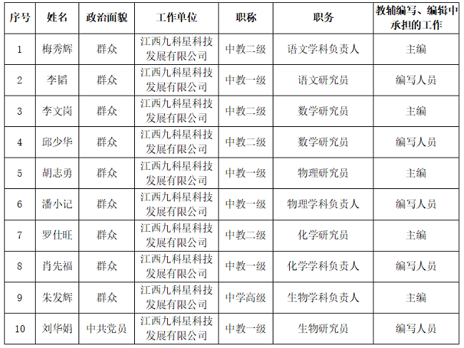 > 新闻资讯 > 社内新闻 > 湖南省2026年中小学教辅材料评议我社送评图书编写人员公示